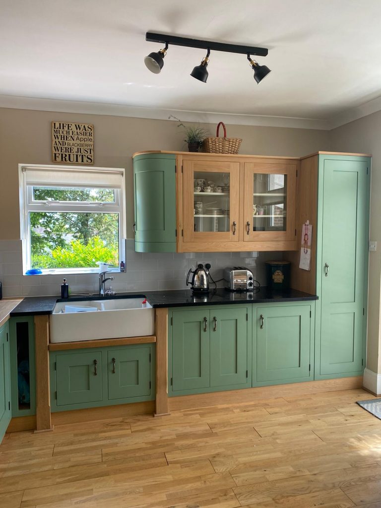 We specialise in making in frame cabinetry in many different timbers, including oak, ash and moisture resistant MDF. Once you’ve decided where you want your cabinets, and what wood you’d like. We will then either spray finish, or hand paint in any colour of your choice.
